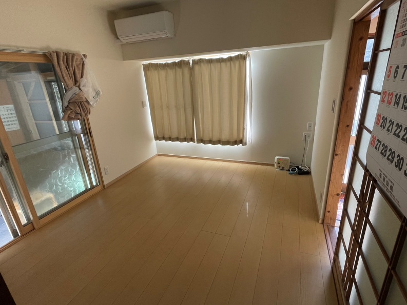 畳からフローリングへ変更し、既存棚を撤去。床面積を広げることで、明るく開放感のあるリビングへ生まれ変わりました。内窓設置で断熱対策も万全です。